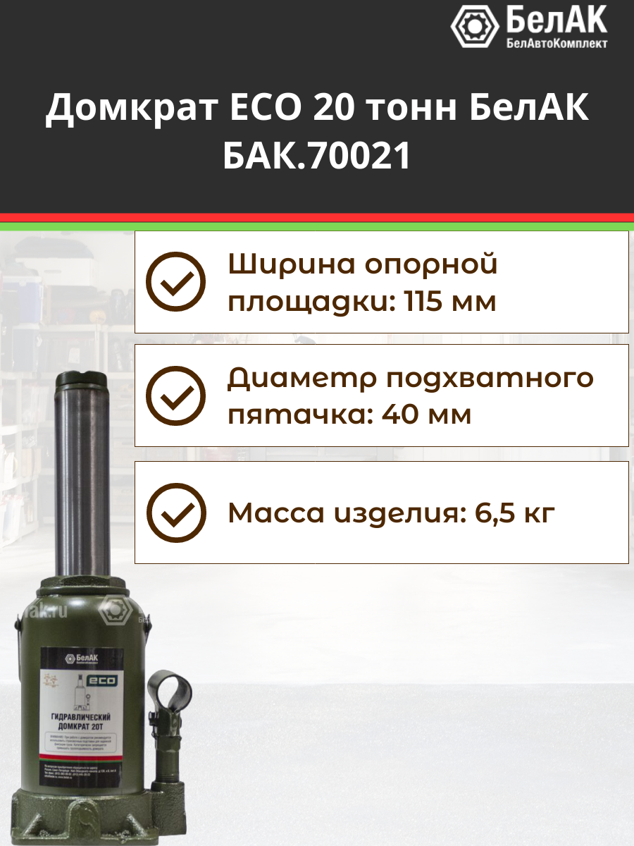 БелАК Домкрат гидравлический 20т ECO БАК.70021