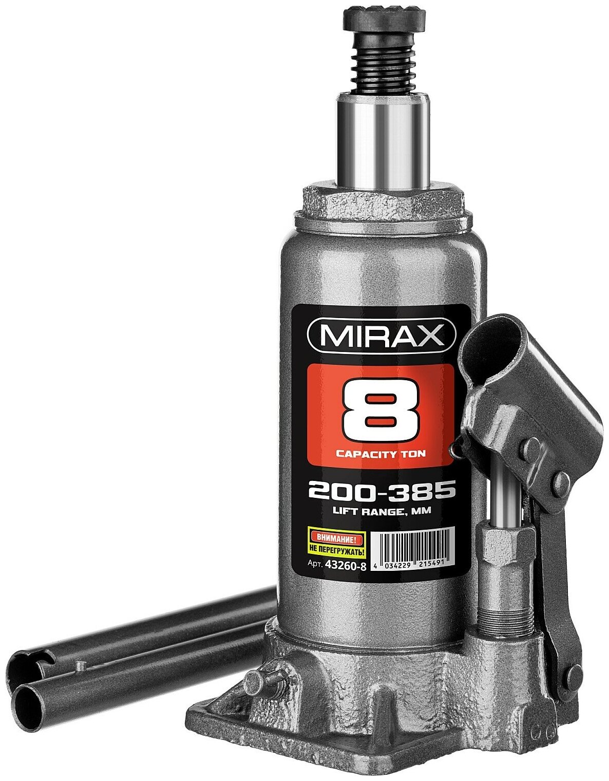Домкрат бутылочный, 8т, 200-385мм, гидравлический MIRAX 43260-8 интересное: