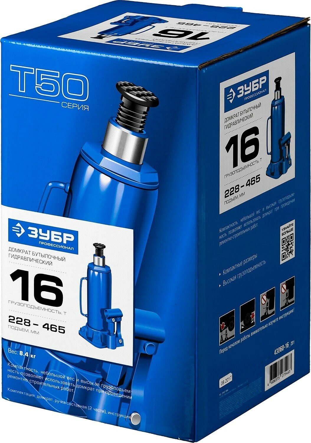 Домкрат бутылочный гидравлический ЗУБР T50 43060-10_z01 (10 т) синий