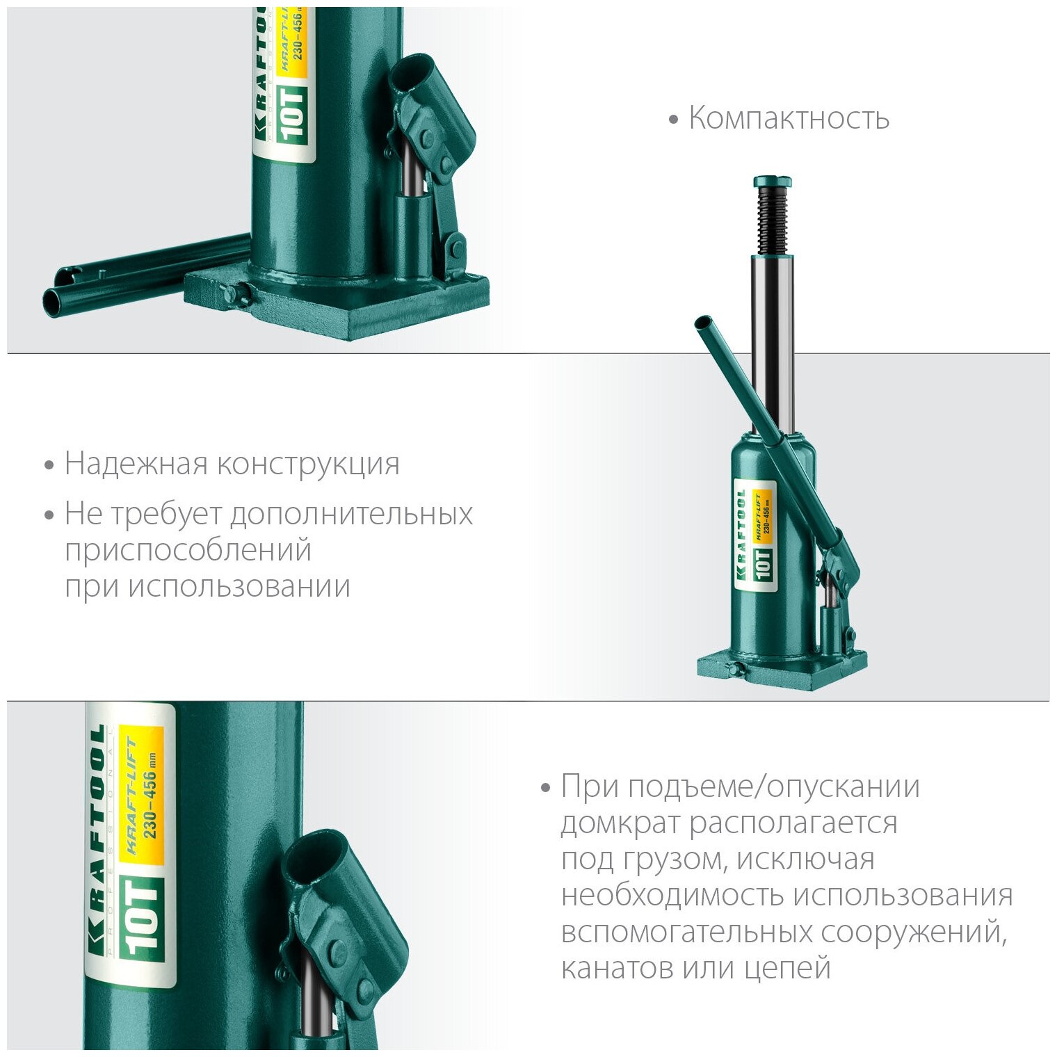 Домкрат бутылочный гидравлический Kraftool 43462-4_z01 (4 т) зеленый