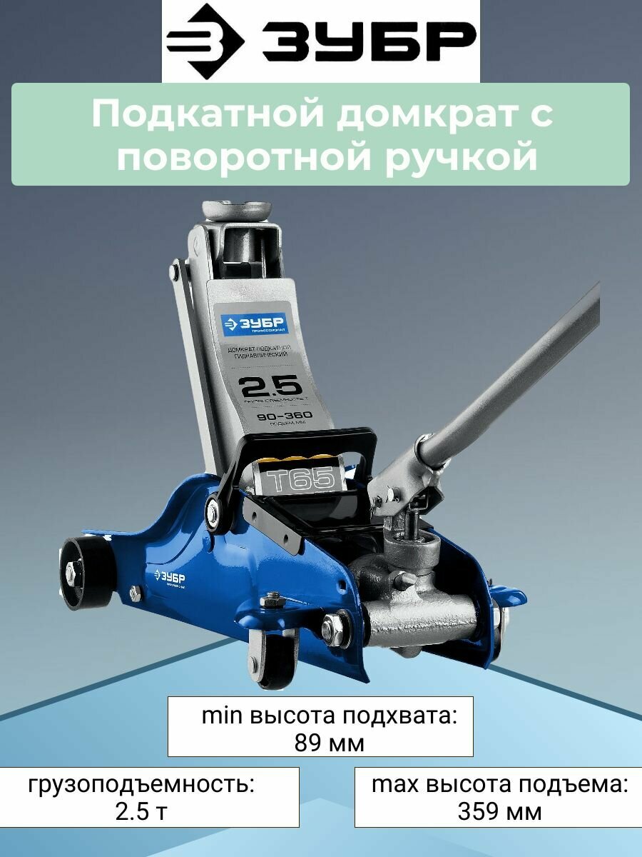 СохранитьЗУБР Т-65-K 2.5т 90-360мм подкатной домкрат с низким подхватом и поворотной ручкой в кейсе, Профессионал интересное: