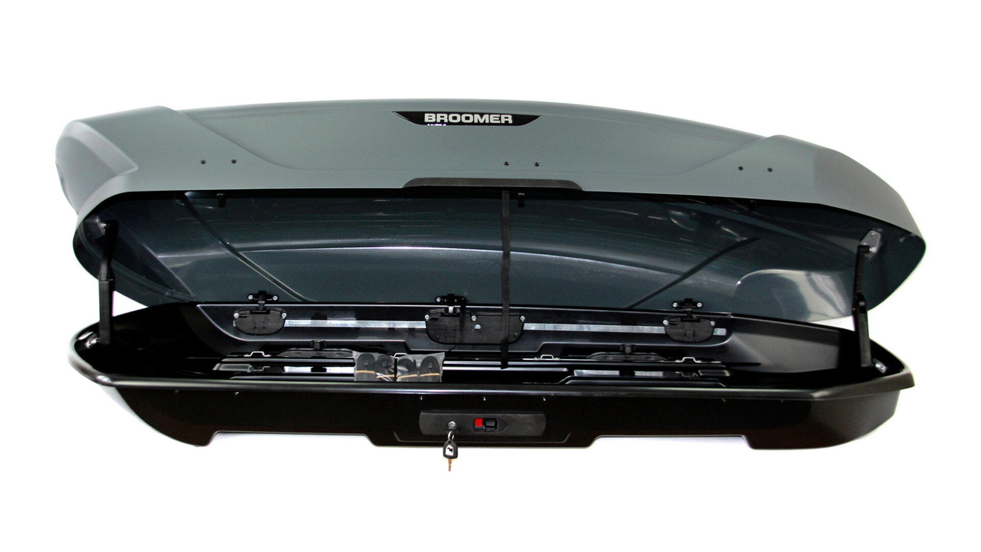 Бокс на крышу Broomer Venture L, 430 л, 187х89х40, серый текстурный, скобы, арт:BR.01.243.01