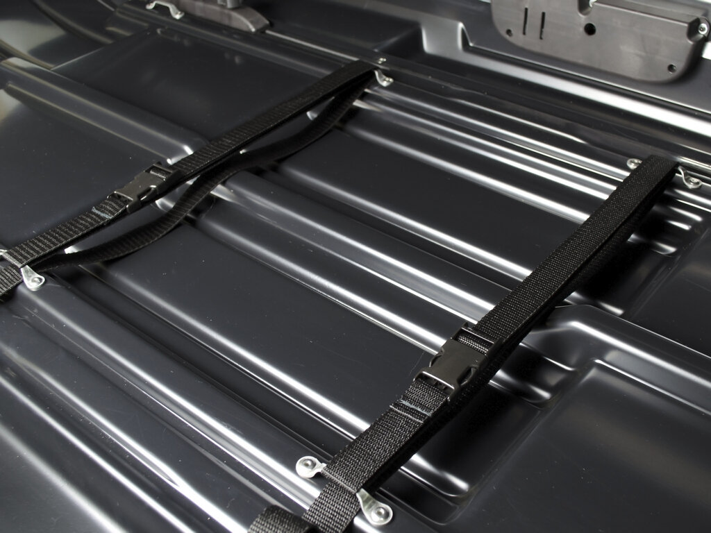 Очень богатая комплектация которая включает: сам бокс, ремни для крепления груза, крюки для хранения бокса на стене и два ключа. На поперечины бокс можно закрепить двумя способами: скобами или на Т-болт. Весь необходимый крепёж идёт сразу в комплекте (и это очень радует), ничего не надо докупать. В целом отличный бокс от российского производителя. Я очень доволен покупкой. |