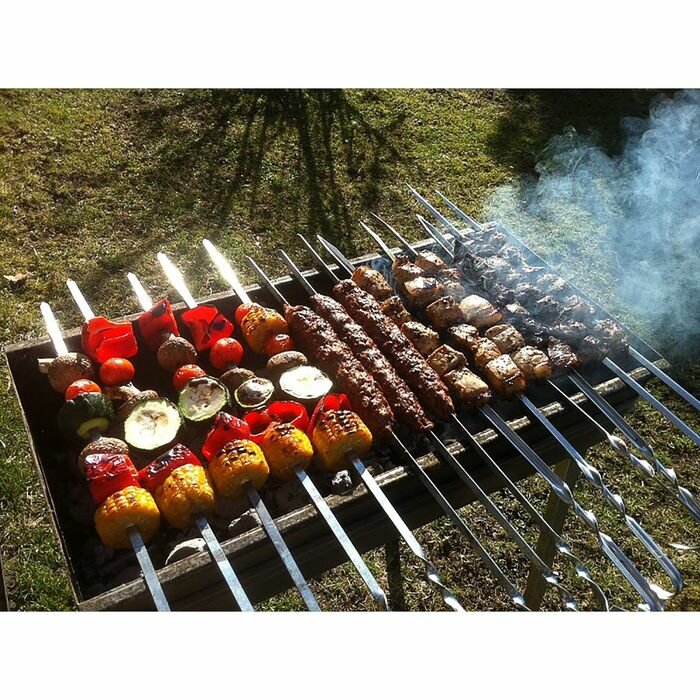 | Минусы: | Железо не прокаленное, рассыпается после первой партии, дно выгнулось от тепла и вывалилось, вставить обратно не возможно. Шампура короткие, по сравнению с обычными в магните, наполовину короче, упаковано все в обычный пакет, перемотанный скотчем |