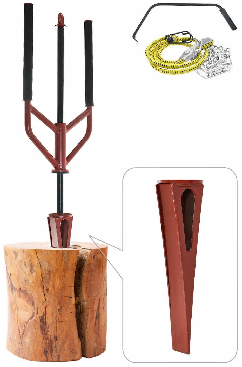 | Дополнительная информация | размер дровокола: 116 х 36 х 9.5 см; размер клина: 35.5 х 10 х 5 см; вес статичной части: 3.3 кг; вес динамичной части: 8 кг; покрытие: молотковая эмаль; материал: сталь |