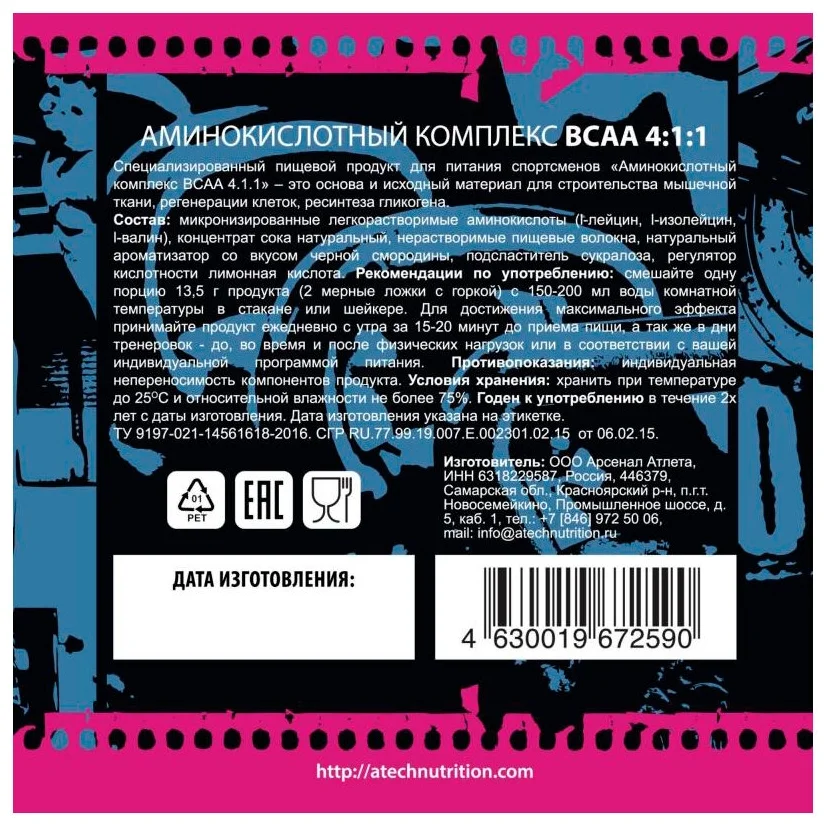 Аминокислотный комплекс BCAA 4:1:1 aTech Nutrition, порошок, Афро-Смородина 300 г