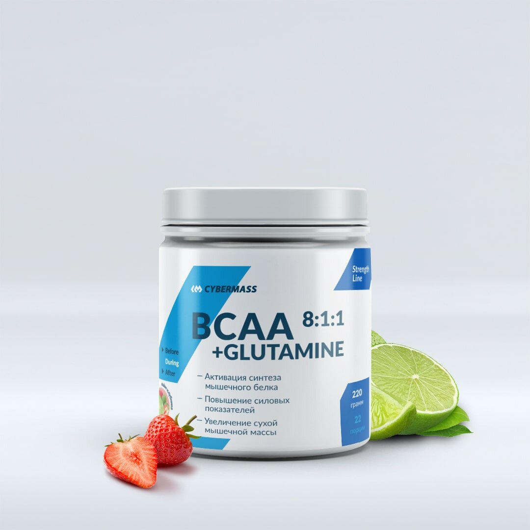 Комплекс аминокислот BCAA 8:1:1 + Глютамин со вкусом лайма и клубники Cybermass 220 гр.