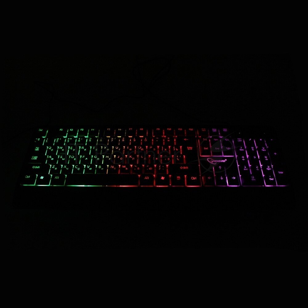 Клавиатура с подсветкой Gembird KB-220L, USB, черный, 104 клавиши, подсветка Rainbow, кабель 1,5 м