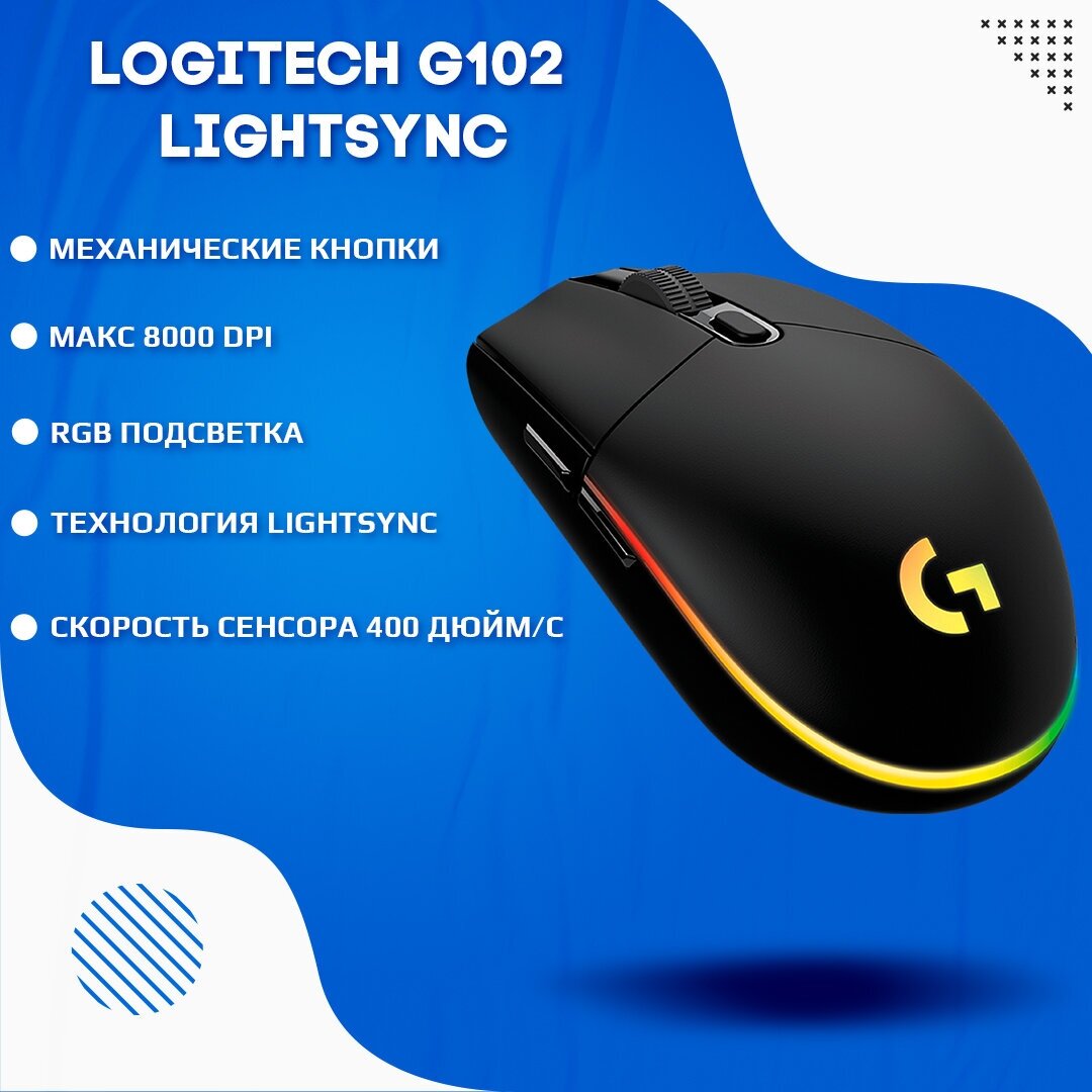 Игровая мышь Logitech G G102 Lightsync черный, 8000dpi, RGB-подсветка