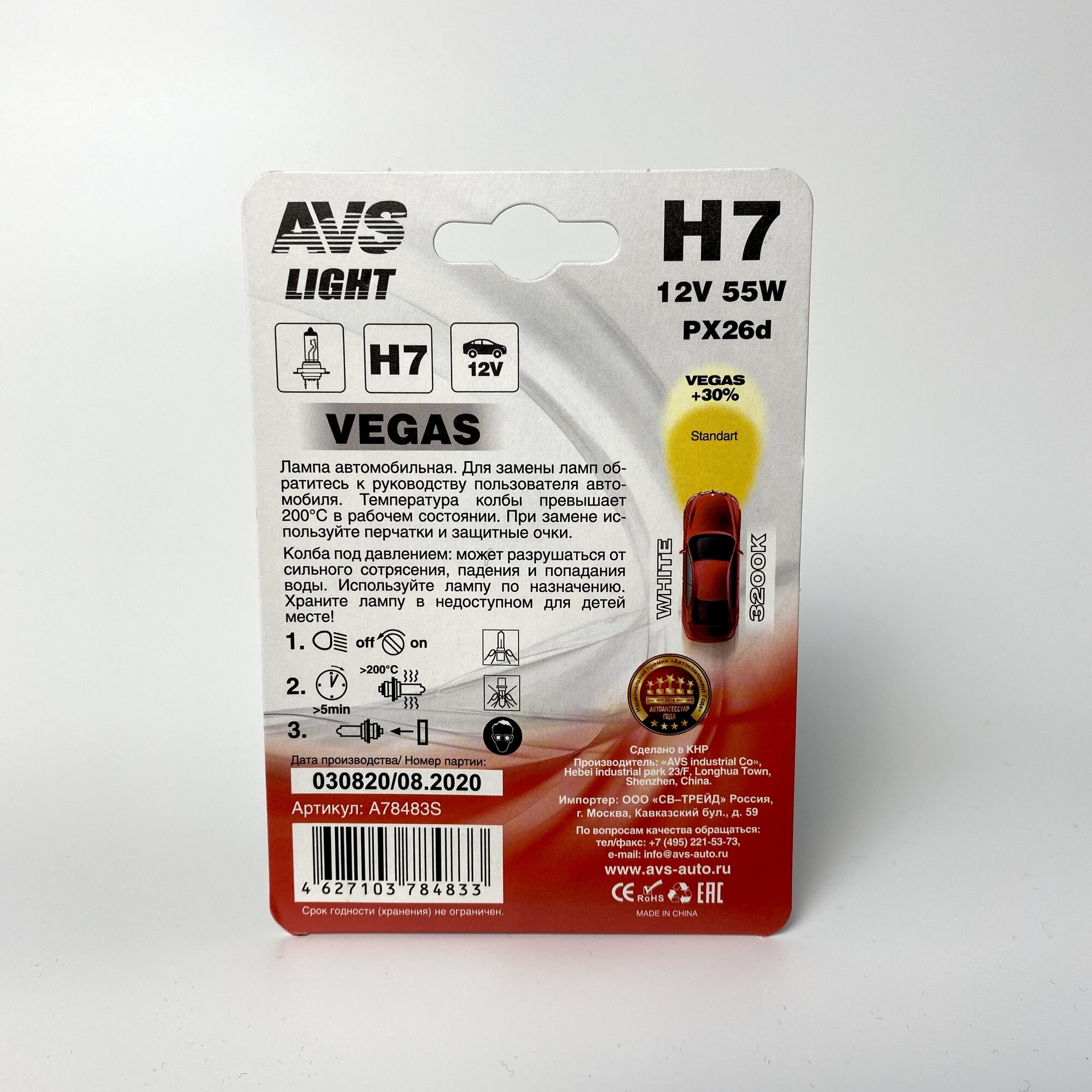 Галогенная автолампа AVS "Vegas", H7, 55Вт, 12В, теплый белый цвет