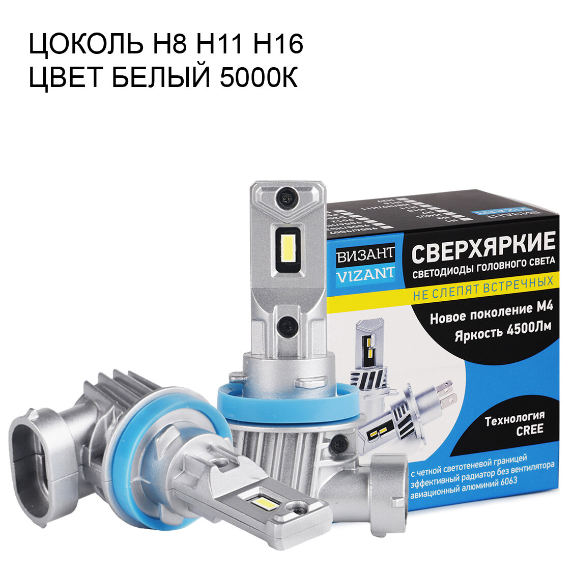 Светодиодные лампы Vizant M4 цоколь H11 с чипом CREE Tech 4500lm 5000k