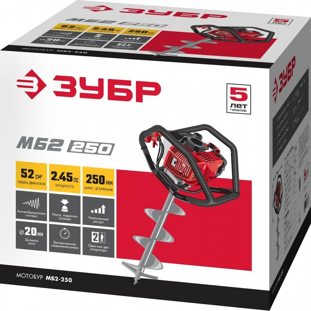 ЗУБР d 60 - 250 мм, 52 см3, 2 оператора, мотобур (бензобур) (МБ2-250)
