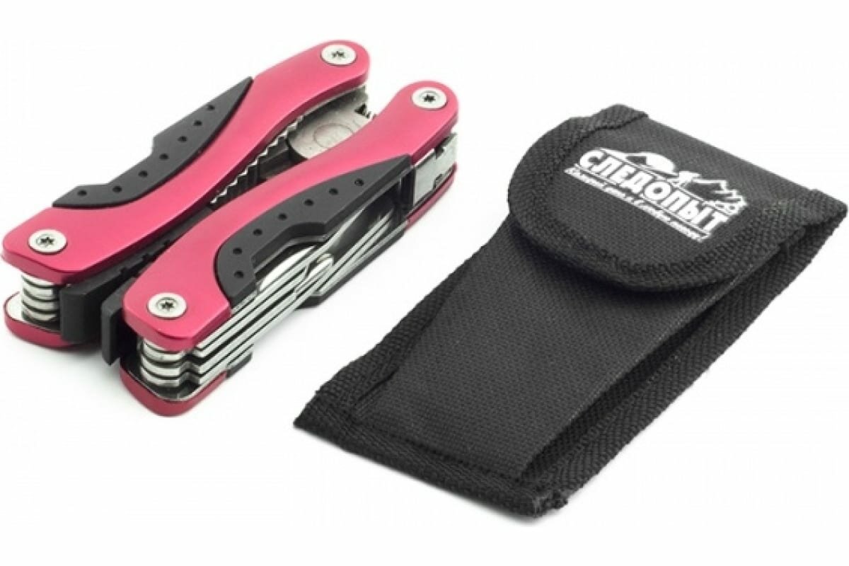 Мультитул (плоскогубцы) "следопыт", средний, 9 предметов, в чехле, в коробке, Красный