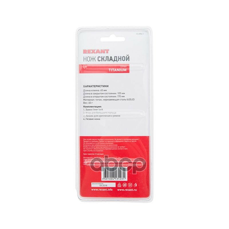 СохранитьНож Складной Коготь Полуавтоматический Rexant Titanium Rexant 1249062 REXANT арт. 12-4906-2 интересное: