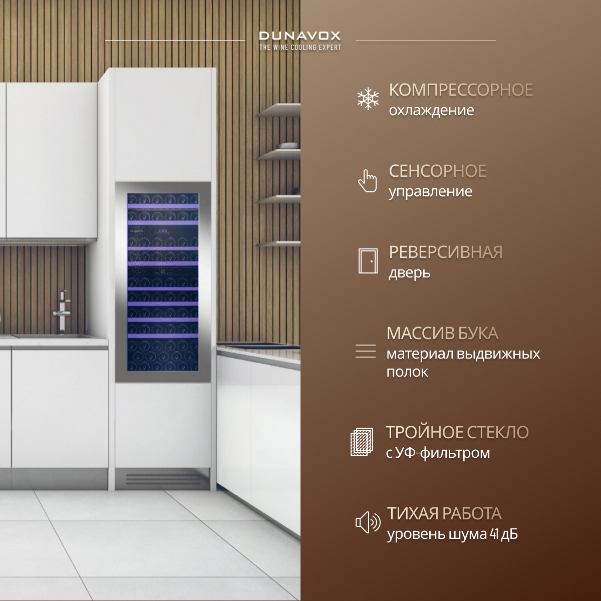 Встраиваемый винный шкаф Dunavox DAB-65.178TSS.TO интересное: