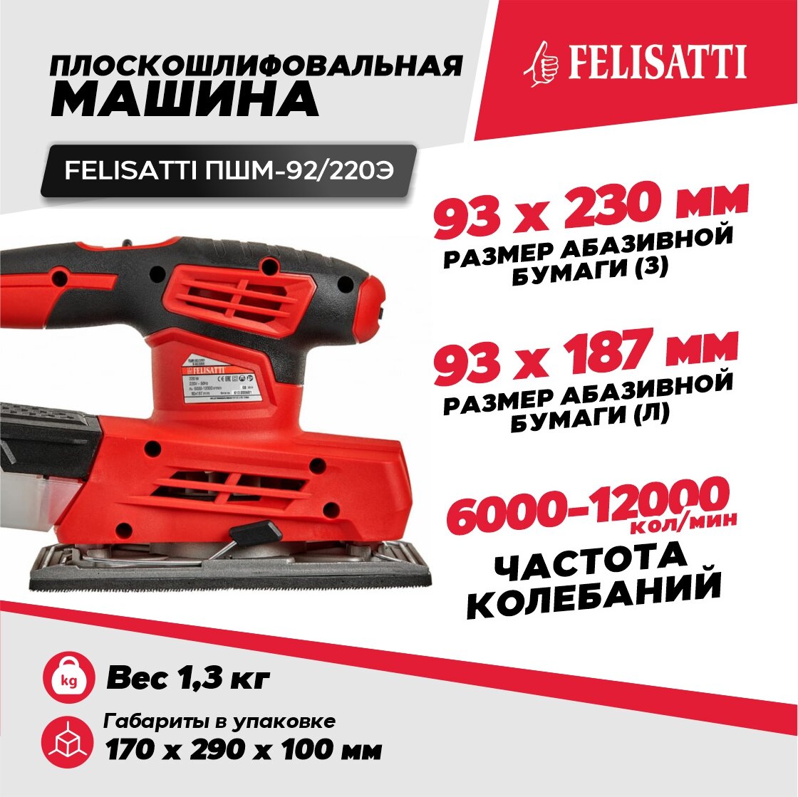 Плоскошлифовальная машина Felisatti ПШМ-92/220Э электроинструмент, подарок на день рождения мужчине, любимому, папе, дедушке, парню