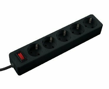 Сетевой фильтр Космос 5м,5гнезд,пвс3х0,75мм2 чер .