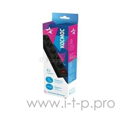 Сетевой фильтр Космос 3 м 5 розеток пвс 3х0 75мм2 черный