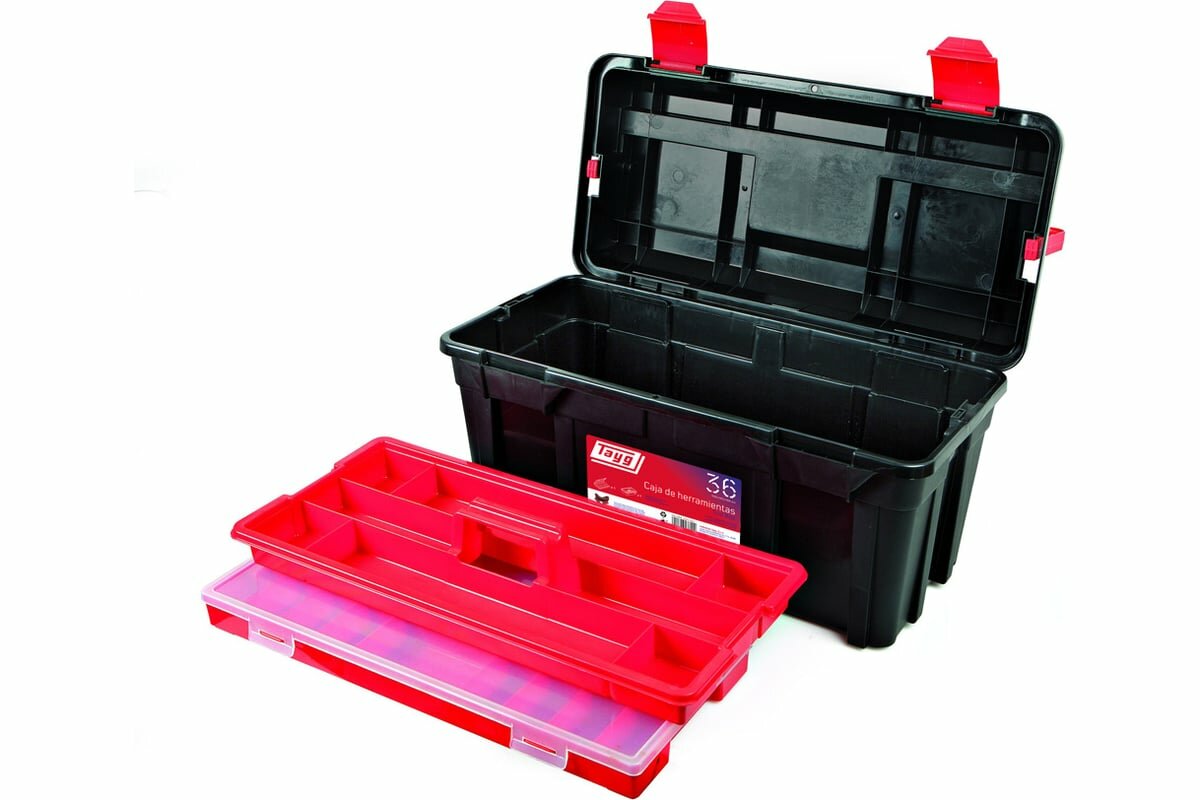 Ящик для инструмента TAYG №36, с лотком, футляром и ручкой-фиксатором, черный, 580х285х290 мм