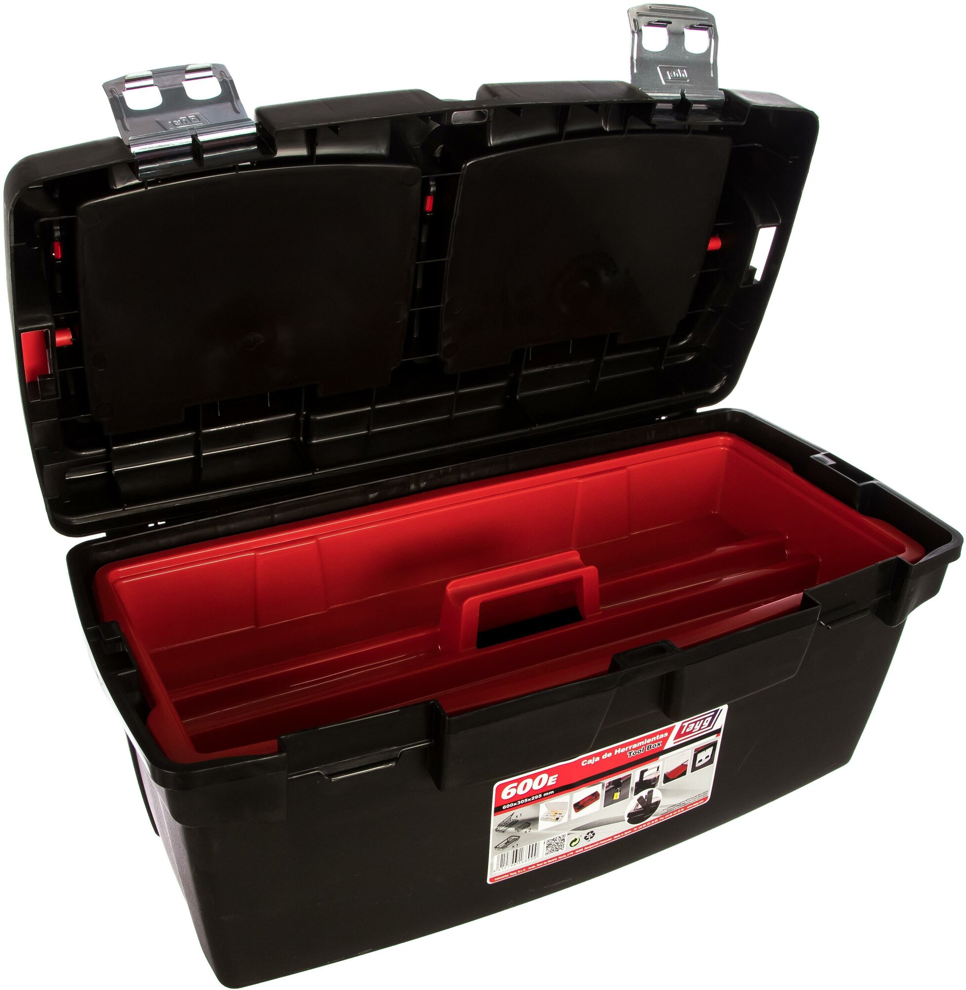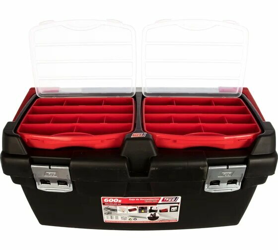 Ящик для инструмента TAYG №600-Е , с лотком, 3 органайзерами и ручкой-фиксатором, черный, 600х305х295 мм