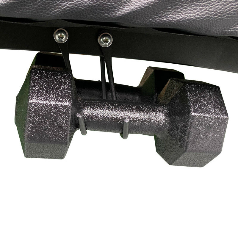 DFC скамья для пресса D102RY с гантелями и эспандерами