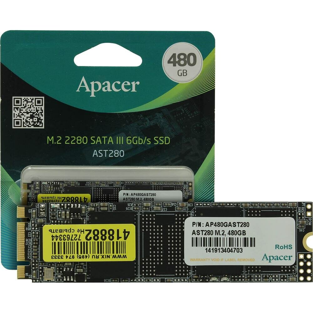 Твердотельный накопитель SSD Apacer AST280 480Gb SATA M.2 2280, R520/W495 Mb/s, 3D TLC, MTBF 1,5M, 280TBW, Retail, 3 years (AP480GAST280-1)