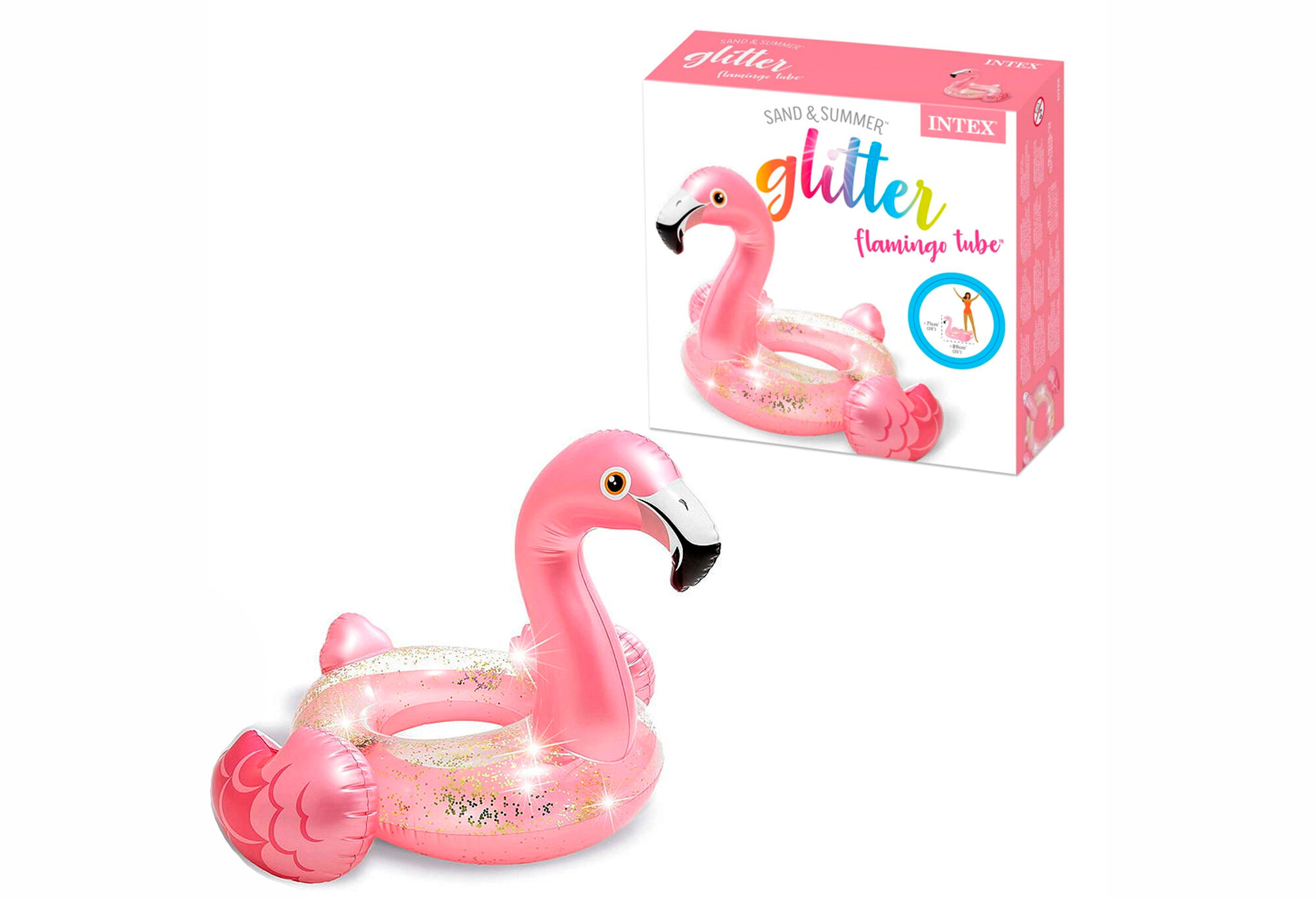 Круг надувной INTEX Glitter Flamingo Tube (Блестящий Фламинго), от 9 лет, 89x71см