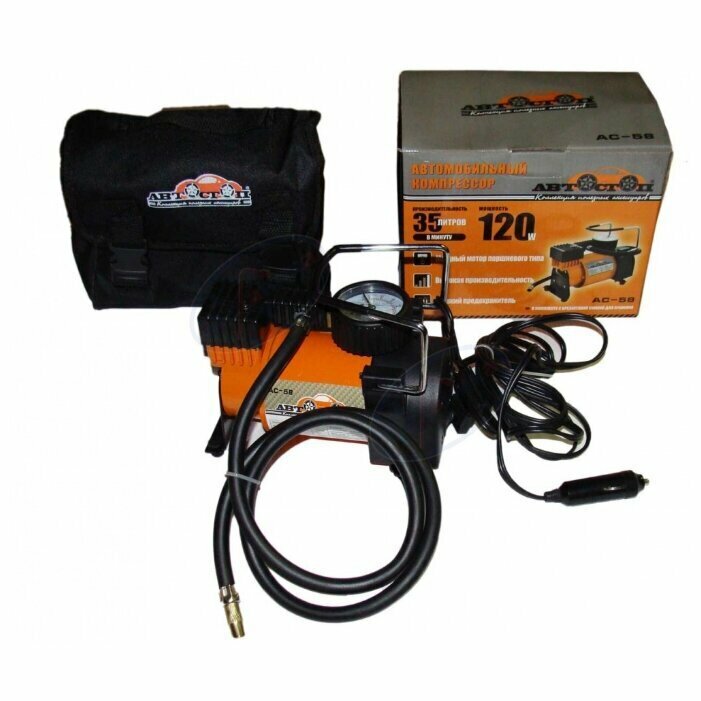 Компрессор AC-58T поршневой 150PSI (35л/мин, 10A) с плавким предохранителем, в сумке 12V автостоп