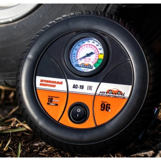 Автостоп AC-19 Компрессор автомобильный 18л/мин. 5атм. 8А 12V колесо автостоп