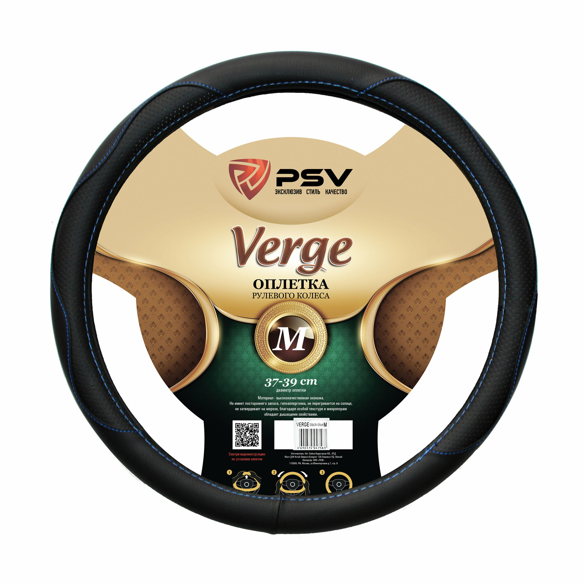 PSV 129632 Оплетка на руль "PSV" иск.кожа VERGE Fiber (Черный/отстрочка синяя) M