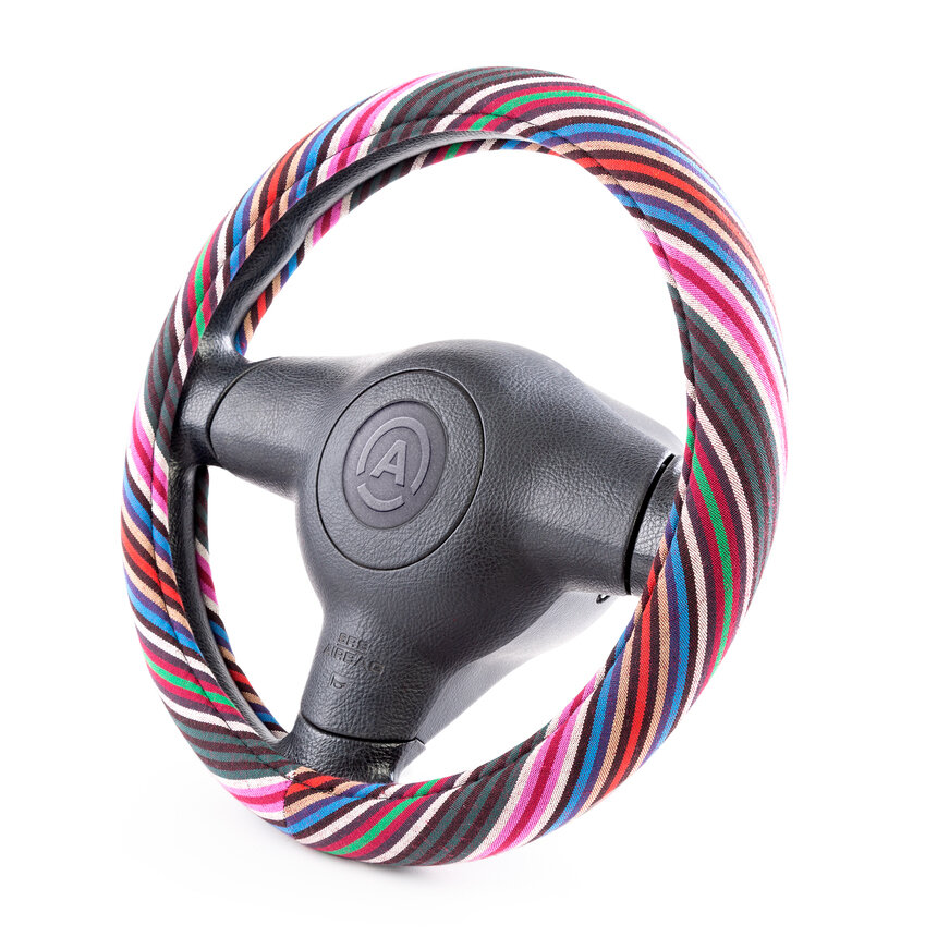 Оплётка руля AUTOPROFI AP-1915 Multi/RD, текстиль, одна деталь, прострочка в цвет, гладкая основа Мульти красный, разм. М