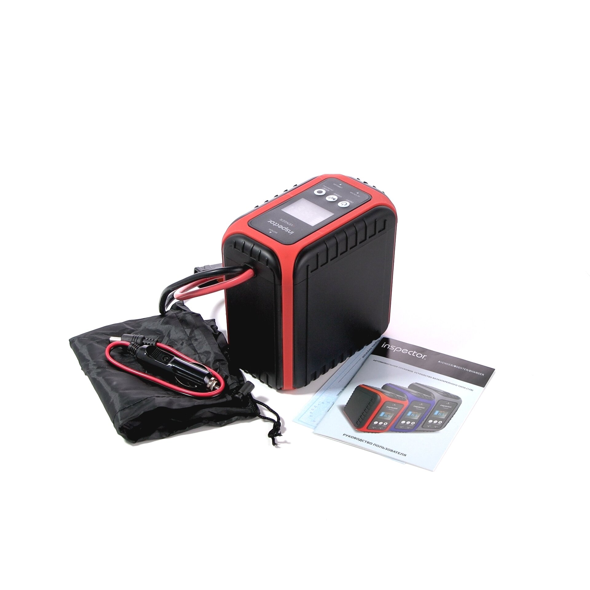 | Плюсы: | Работает без подключения к электросети. Можно зарядить от наполовину севшего аккумулятора, и запустить двигатель. |