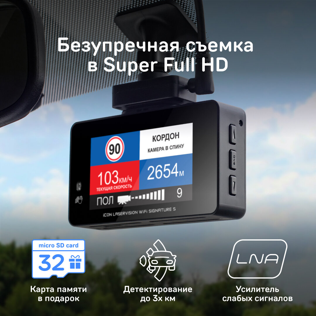 Видеорегистратор с радар-детектором iBOX iCON LaserVision WiFi Signature S интересное: