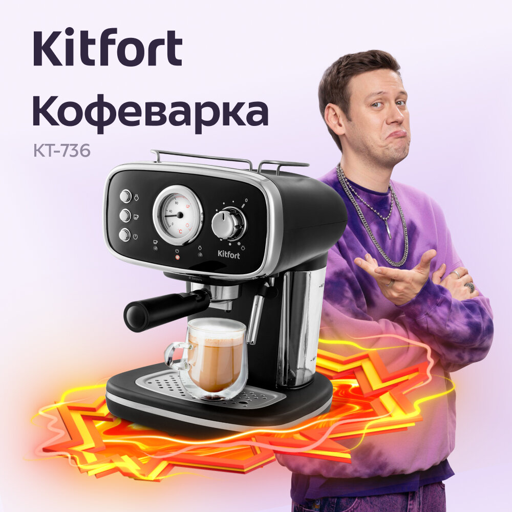 Кофеварка KitFort КТ-736, рожковая, черный / серебристый