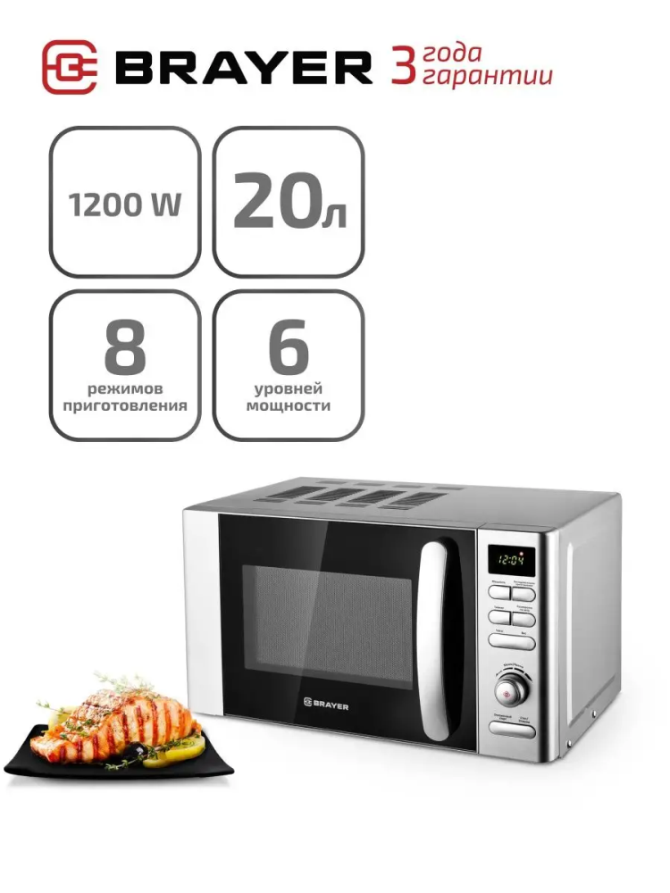 Ниже Вы можете прочитать отзывы на Микроволновая печь BRAYER BR2502, 700 Вт, 20 л, цифровое управление, 8 режимимов приготовления, LED дисплей, таймер, ознакомится с подробными характеристиками, посмотреть интересные обзоры и фотографии на Микроволновая печь BRAYER BR2502, 700 Вт, 20 л, цифровое управление, 8 режимимов приготовления, LED дисплей, таймер.