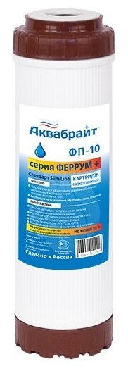 Картридж аквабрайт феррум плюс ФП-10 для удаления железа, SLIMLINE 10"