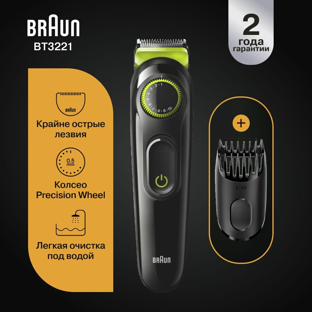 Триммер Braun BT 3221, черный/зеленый интересное: