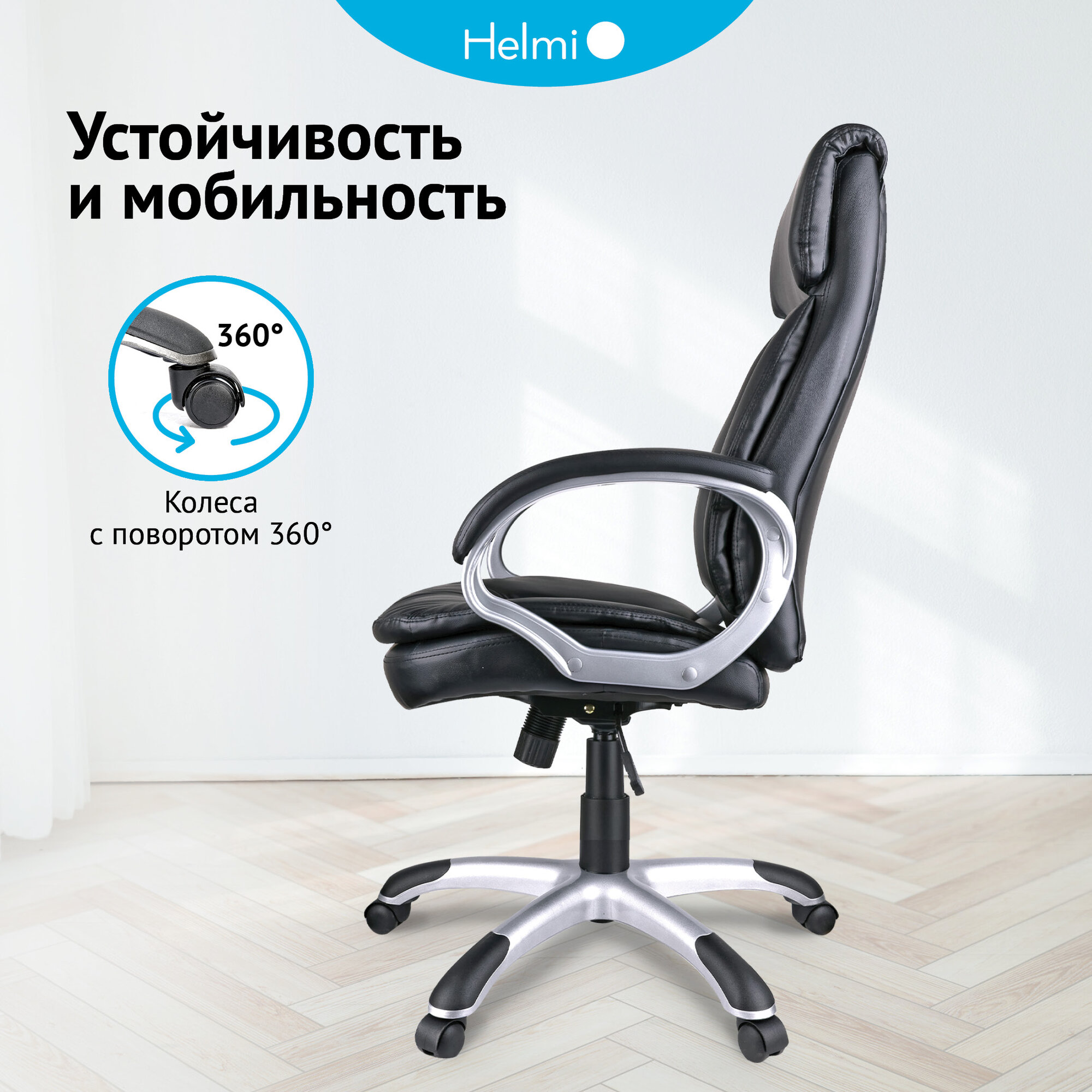 Кресло руководителя Helmi HL-E07 Invest, экокожа черная, механизм качания