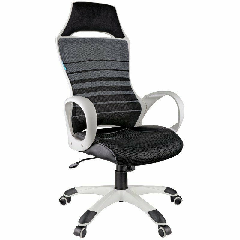 Компьютерное игровое геймерское офисное кресло (стул) с подлокотниками Helmi HL-S05 "Podium", ткань/сетка/экокожа черная, пластик белый