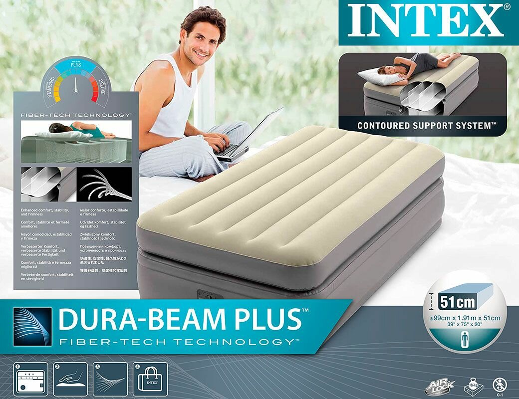 INTEX Надувная кровать с насосом Prime Comfort Twin, 99*191*51 см 64162