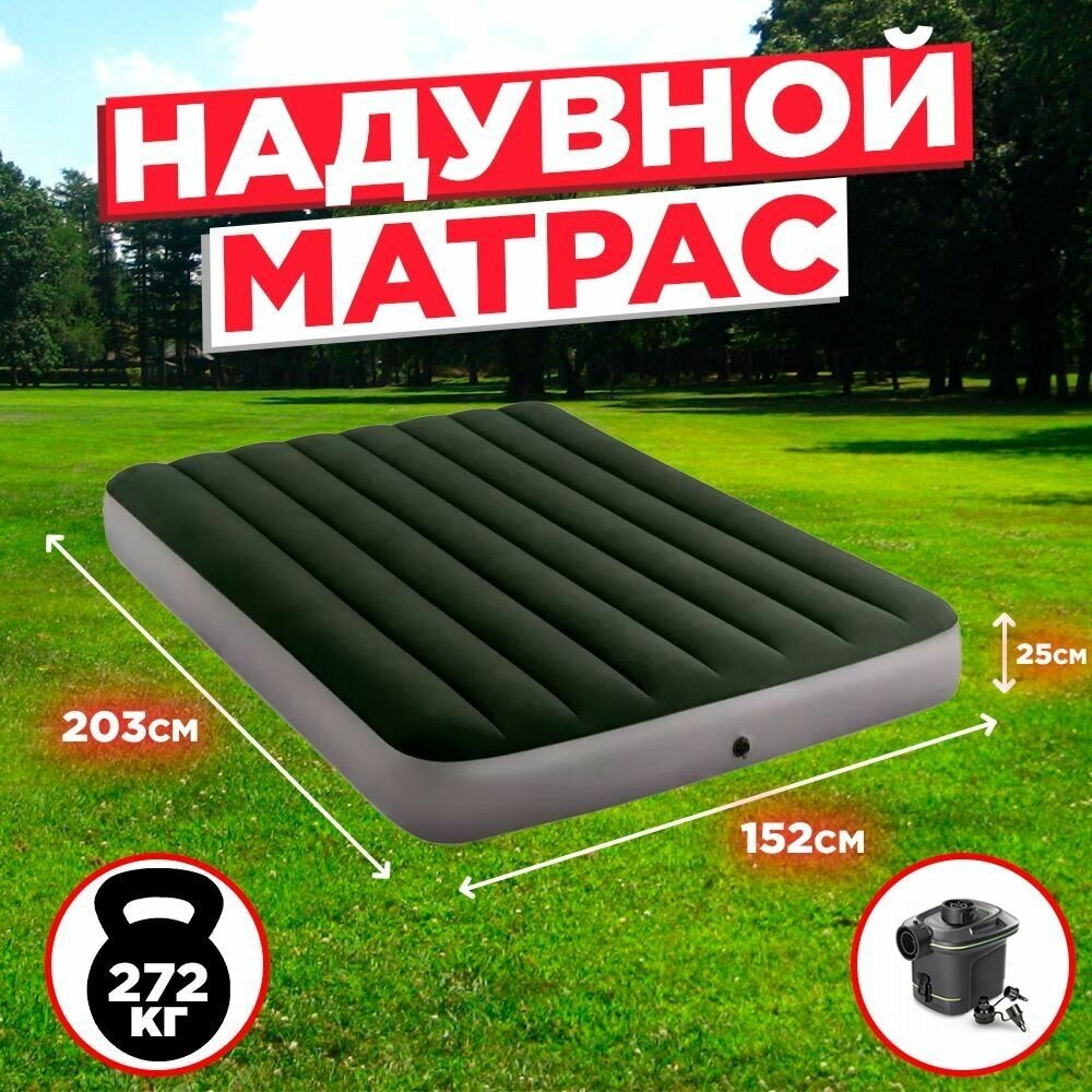 Матрас надувной Intex, 203х152х25 см, 64779, насос внешний, электрический, флокированный, 273 кг