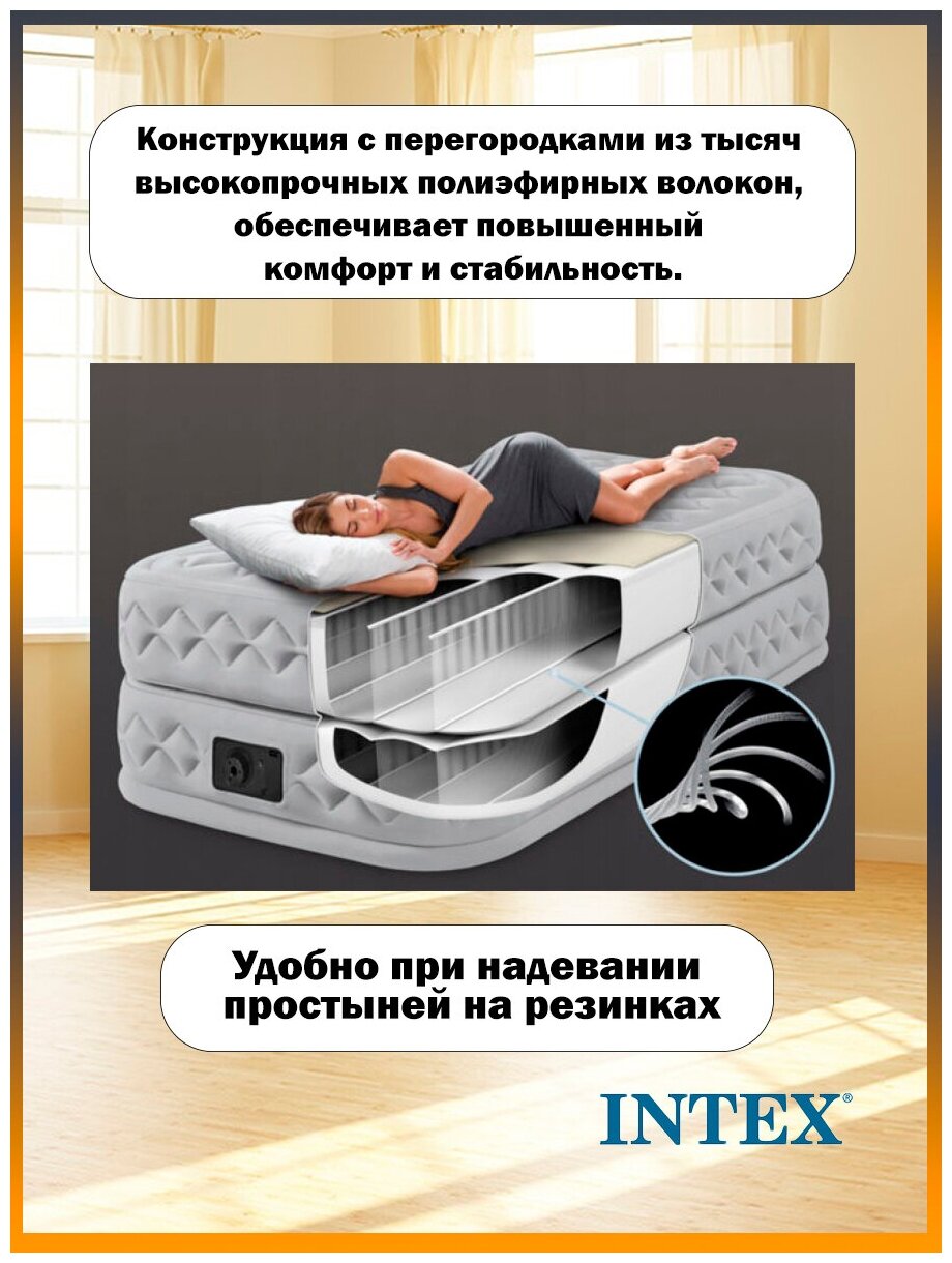 Кровать надувная Intex 64488 99х191х51см "Supreme", встроенный насос