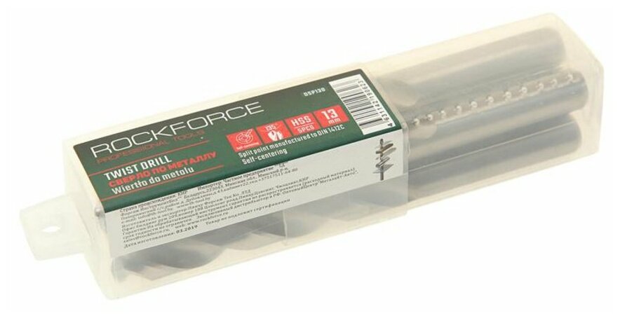 Купить Сверло по металлу 13мм HSS(5шт), в пластиковом футляре ROCKFORCE