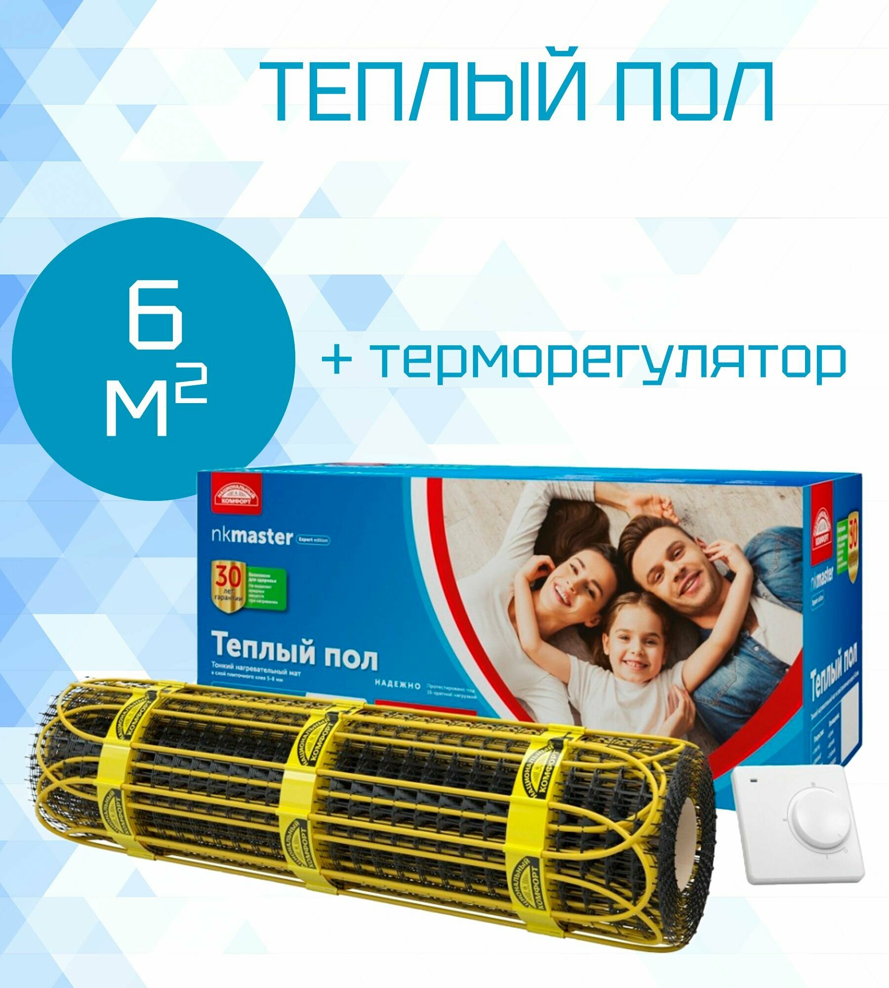 Теплый пол. Мат нагревательный "Национальный комфорт" 2НК 900 Вт/6,0 кв.м Мастер с терморегулятором