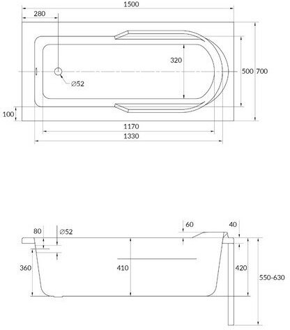 Ванна 1Marka Marka One VIOLA 150x70 без гидромассажа акрил