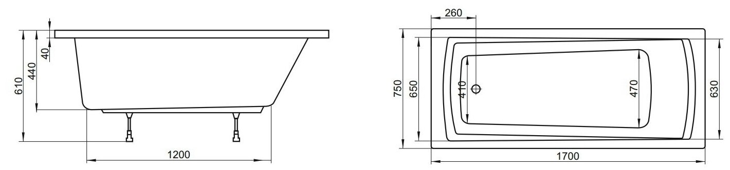 Ванна акриловая Ravak DOMINO PLUS SET1 70508015 170х75
