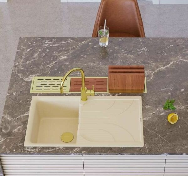 Кухонная мойка с крылом OMOIKIRI Yasugata 86-SA, искусственный гранит/бежевый