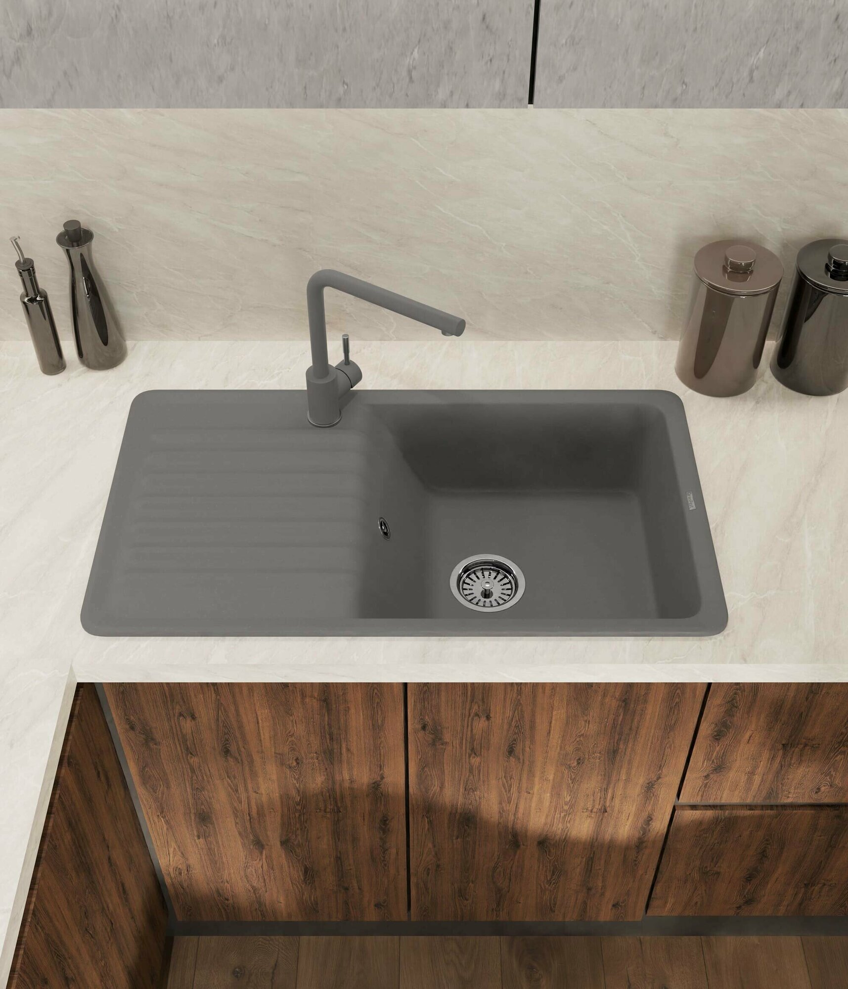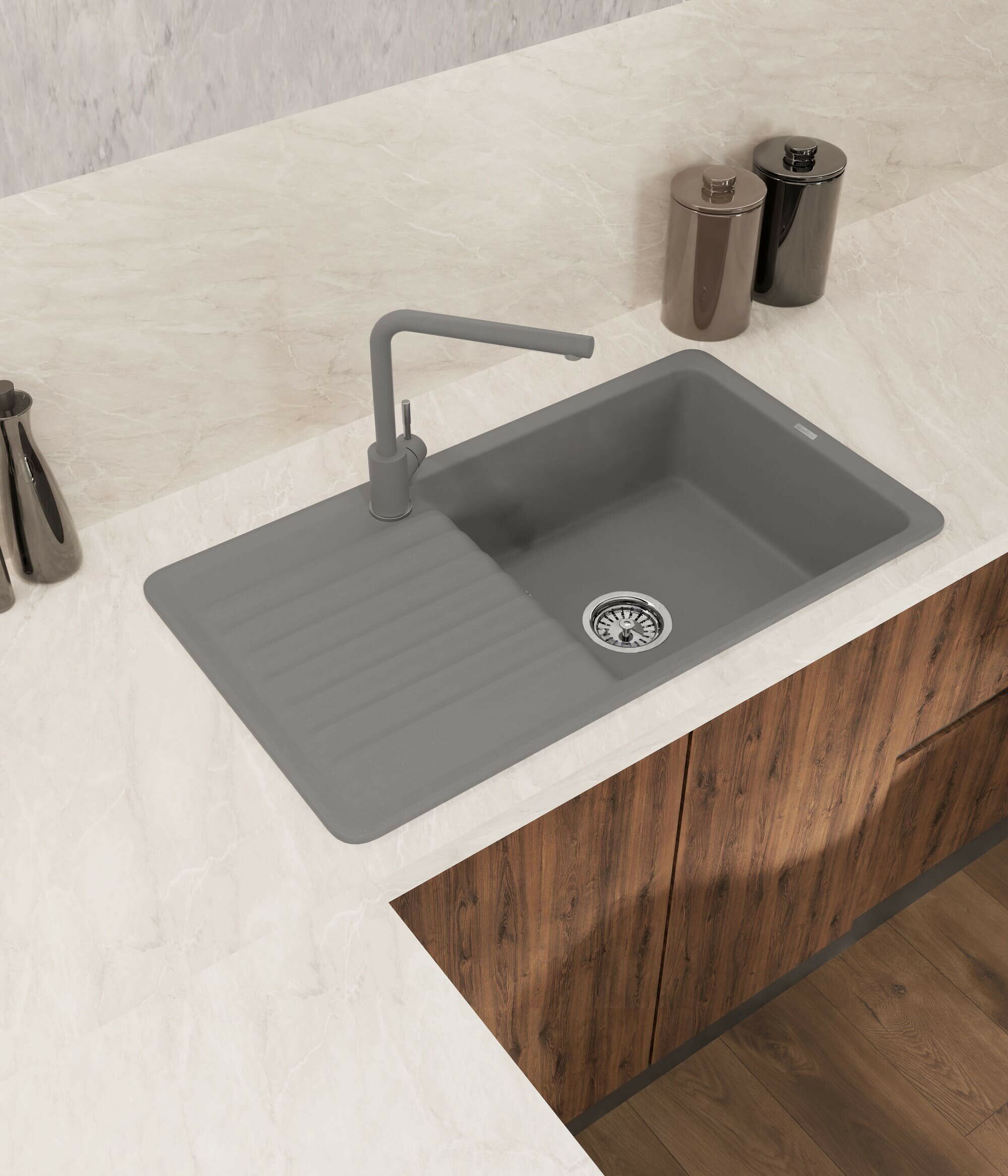 Мойка GRANFEST--QUARZ - 73 1 чаша+крыло 860*480 мм (серый)(без сифона)