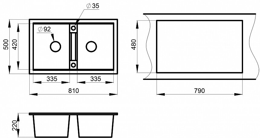 Кухонная мойка кварцевая Granula GR-8101 двухчашевая, врезная, чаша 335x420, 335x428, цвет черный (8101bl)