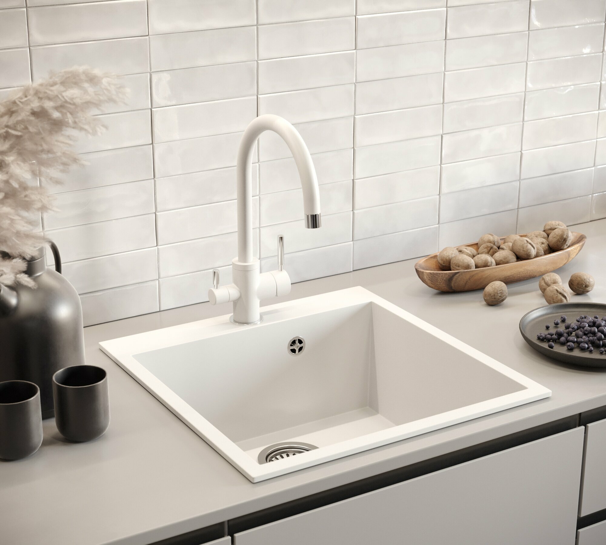 Купить Мойка кухонная Domaci Солерно EMQ-1510.Q белая, 51х52 см, встраиваемая, кварцевая, квадратная